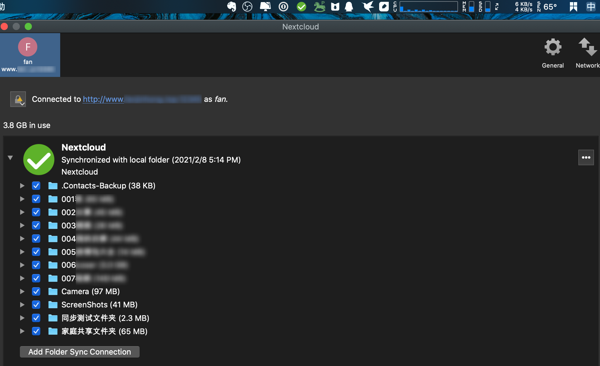 例如,我在mac系统下建立了双向同步,Nextcloud作为同步盘有提示按钮