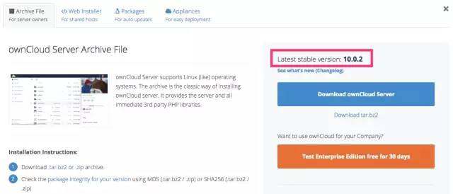 PS:10.0.2是最新的版本号,具体最新的是什么,可以去(https://owncloud.org/install/#edition),看下面这个地方: