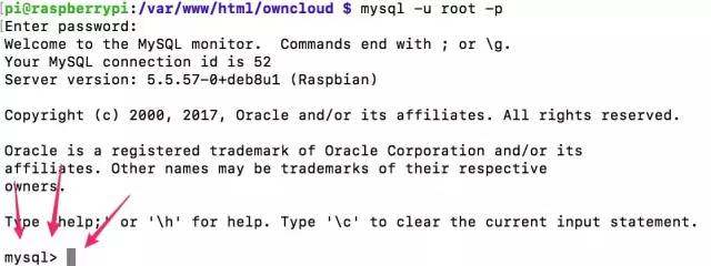 到这里,所有需要在树莓派上安装的东西就完成了,接下来只需要配置好数据库和ownCloud就可以使用了